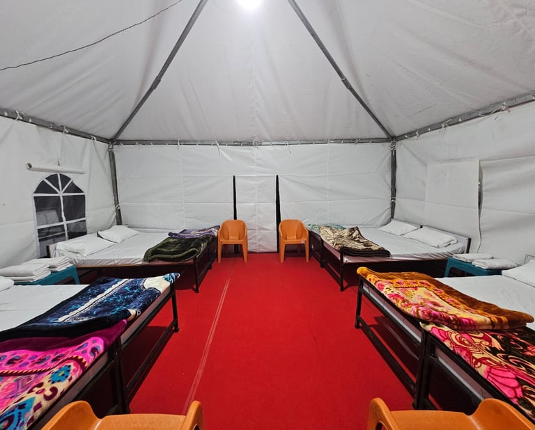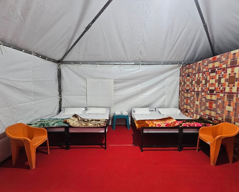 Experience the Maghmela with our luxury camps, offering comfortable accommodations and personalized services, ensuring a truly divine atmosphere. Enjoy delicious meals and a prime location near the main event areas for easy access to spiritual activities.